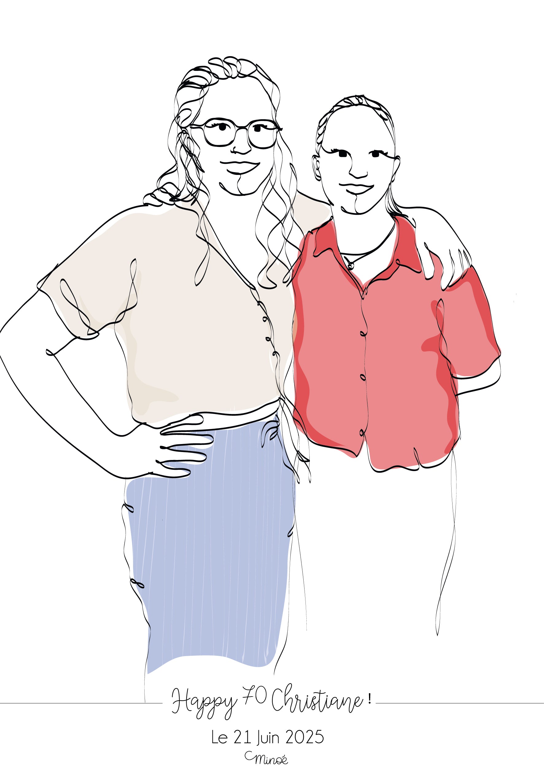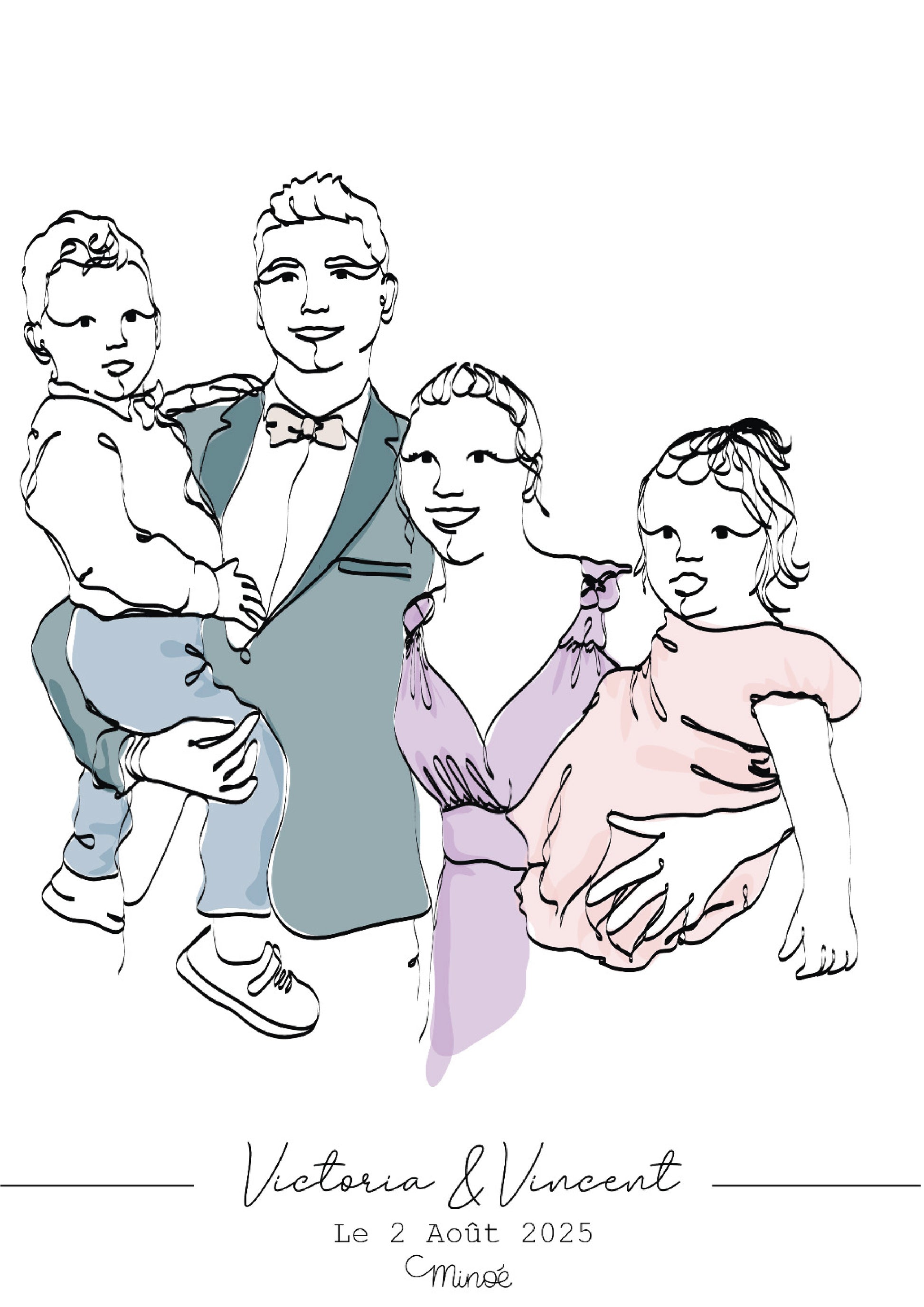 Vous avez croisé le bar à portraits de Minoé, mais je n'ai malheureusement pas eu le temps de vous dessiner ? Je vous propose de me contacter par mail ou sur les réseaux sociaux pour que je retrouve votre photo prise ce jour là, afin de réaliser votre portrait en souvenir de cette belle journée, au même tarif tout doux que le bar à portraits des mariés.