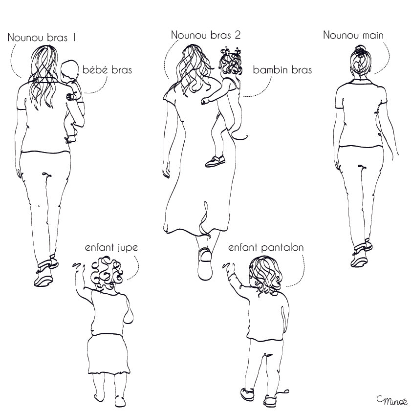 Silhouette de l'enfant - coiffure - vêtements éventuellement - prénom
