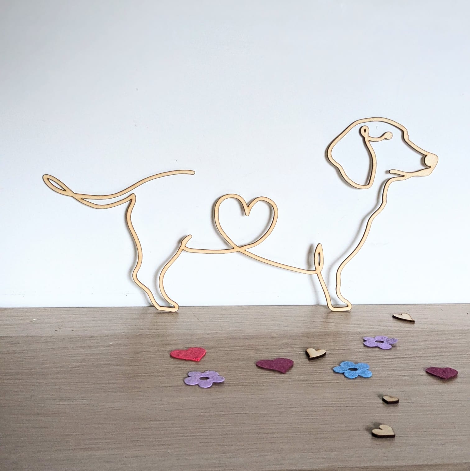 Si toi aussi tu trouves que la vie est plus belle avec un chien saucisse, alors ce teckel en lignes de bois est fait pour toi !